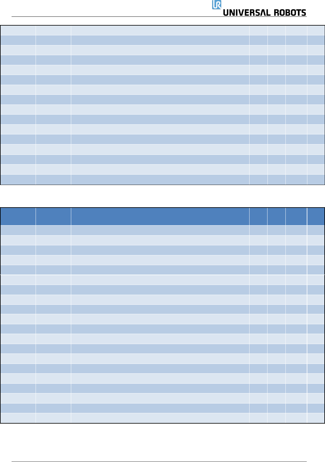 保留所有权利 171 Servicemanual_UR5 _en_3.2.6 8. 变更日志 日期 版本 操作 变更之处 3.2014 年 5 月 UR5_en_3.0 增加新内容 发布 3.0 版 19.2014 年 6 月 UR5_en_3.0.1 变更 变更图片和插图,匹配 第 3 代机器人 29.2014 年 7 月 UR5_en_3.0.2 变更 变更错误代码和备件, 匹配第 3 代机器人,并增 加防静电处理 2 0 . 2 …