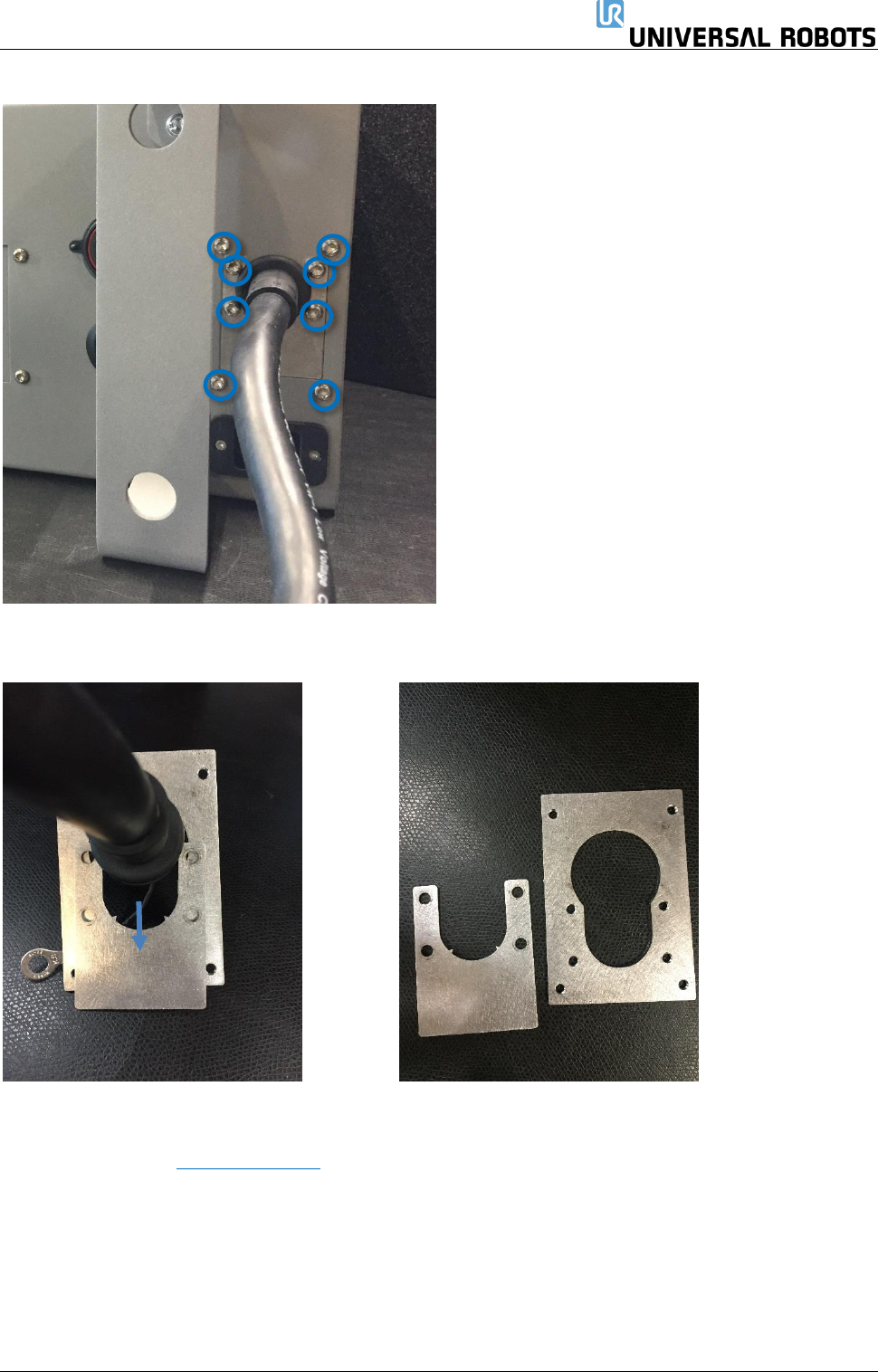 保留所有权利 81 Servicemanual_UR5 _en_3.2.6 4 通过拆卸 8 个梅花 头螺钉和固定螺钉,拆下支架 。 5 拉开两个板件。 6 若要安装新的示教器, 将电缆穿过入口,连接器 插入正确位置,然 后将铝盖安装到位。 7 连接电源,并验证示教 器功能是否正常。 参见图解: 5.4.1 示意图概述