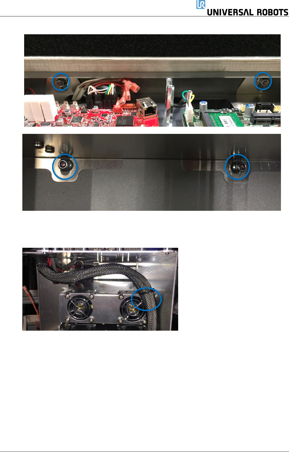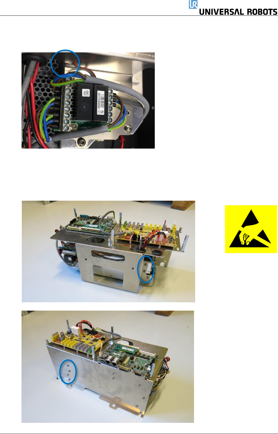 保留所有权利 87 Servicemanual_UR5 _en_3.2.6 7. 顺时针旋转模块 1 80° ,并将其放在 控制器边缘。 8. 拆下分电盘上的电源连 接。 模块现在从控制器上松 开。 9. 电源位于控制器模块下 方的机架中,两个 48V 电源 位于机架中较低的位置( UR3 和 UR5 有一 个, UR10 有两个 48V 电 源)。 拆下 48V 电源之前,先 标记电线,然后将其从电 源上断开。 10. 从机架侧拆下 …