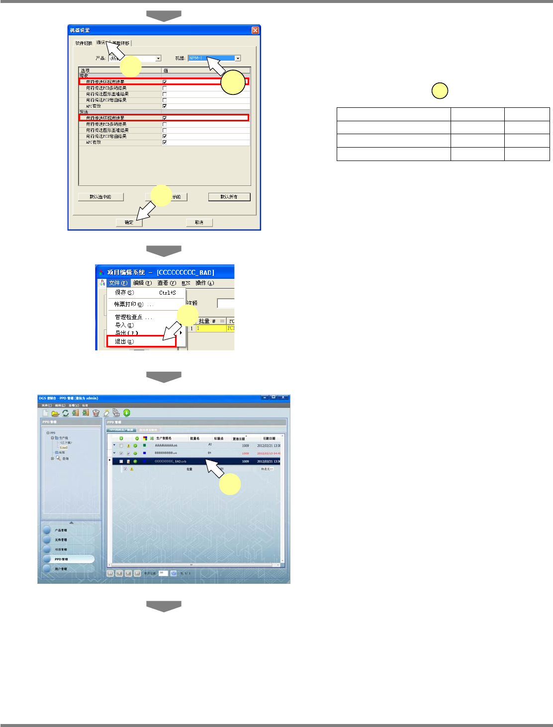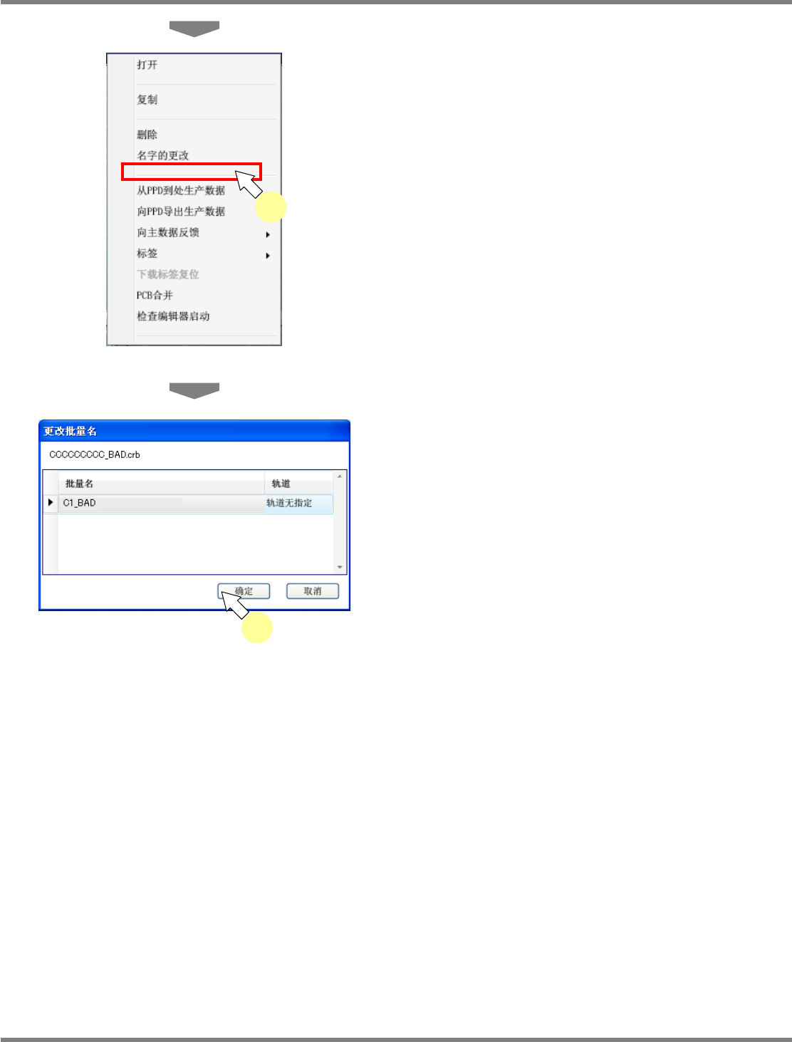 NIP 其他公司检查机的接口软件 4.2 生产数据的设定 Page 4-12 EJNIPC-MB-04G-01 12 选择 [ 更改批量名 ] 。 13 输入任意的 ‘ 批量名 ’ ,按动 [ 确定 ] 按 钮。 04-02-007 NPM-DGS 13 04-01-002 NPM-DGS 12