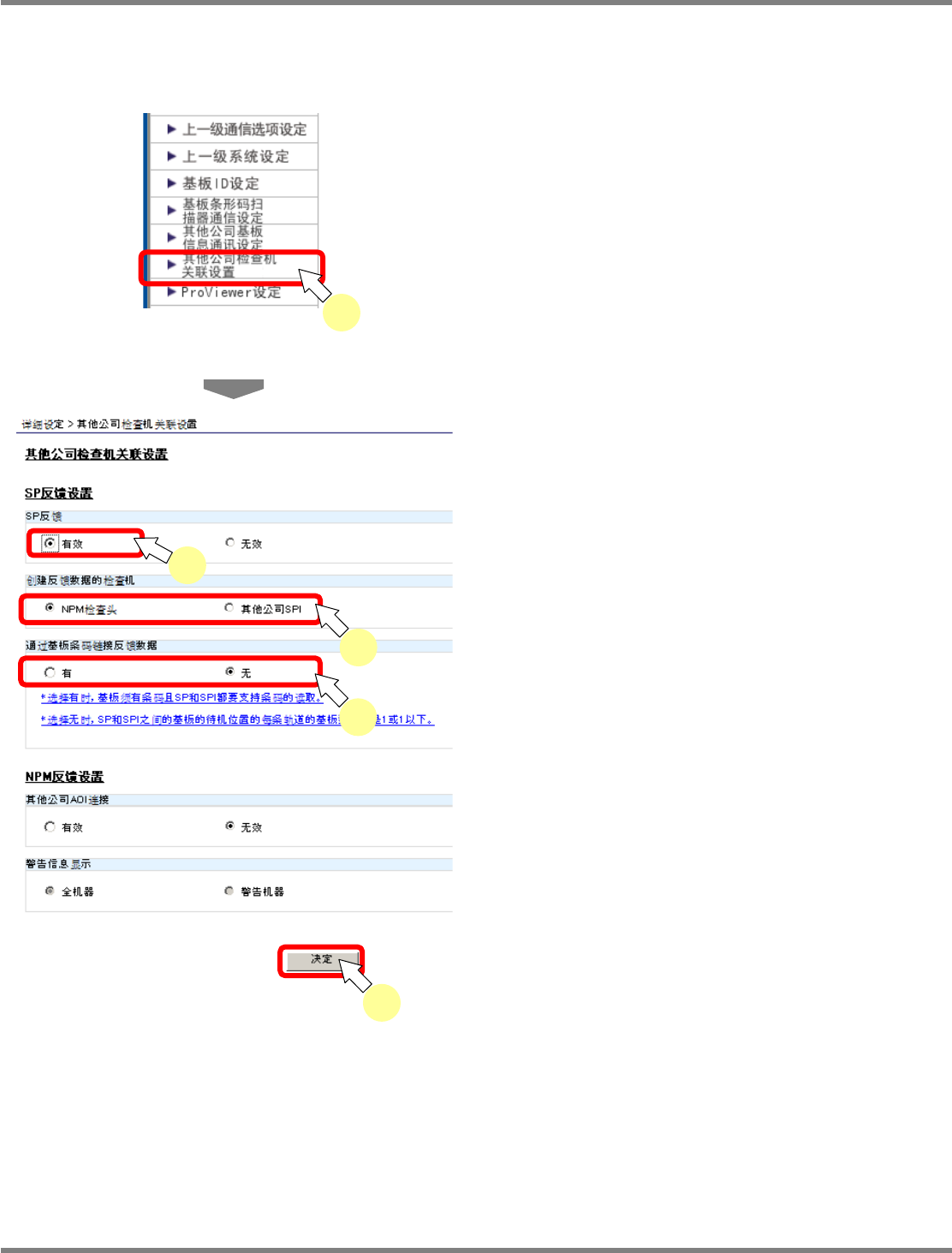 NIP 其他公司检查机的接口软件 5.3 FB 功能的 ON/OFF 切换设定 EJNIPC-MB-05G-00 Page 5-9 5.3 FB 功能的 ON/OFF 切换设定 这里利用 SP 系列的操作画面进行说明。 5.3.1 印刷机 FB 的 ON/OFF 切换设定 印刷机 FB 的 ON/OFF 设定是在生产数据软件开关画面对「检查 机印刷位置补正」进行设定。 z ON: 印刷机 FB 功能成为有效。 z OFF: 印刷机 FB…