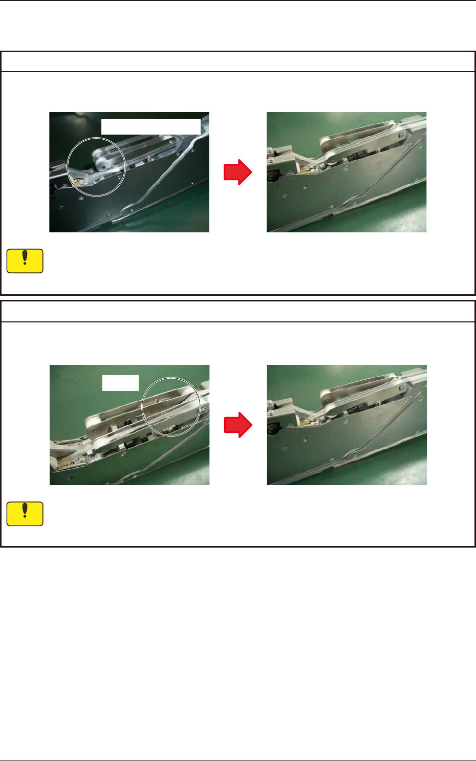 1209-001 Notice Chip component or foreign substances including debris Remedy : Remove any chip component or foreign substance such as debris attached onto the sprocket and completely clean the sprocket. Cause : Chip comp…