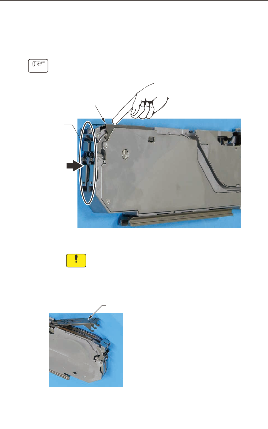 2. Attachment and Detachment of T ape 2.1 Attachment of Paper or Embossed T ape Procedure (1) While gently pressing the end of the suppressor with your nger , press the lower side of the front hook to lift the suppresso…