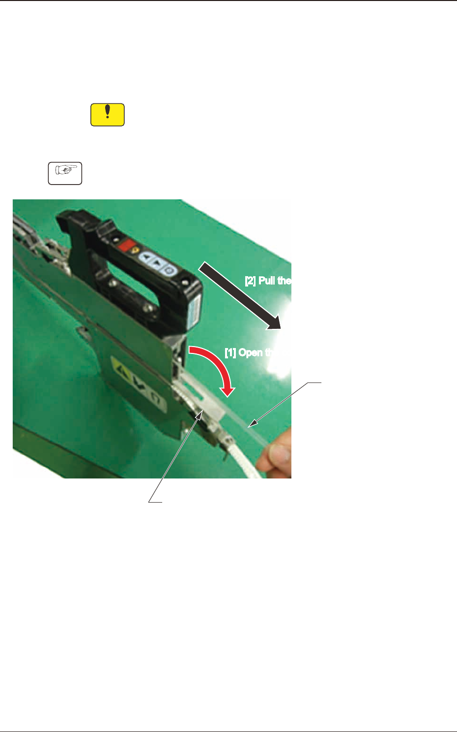 (2) Press down the cover tape take-up release lever and remove the cover tape.