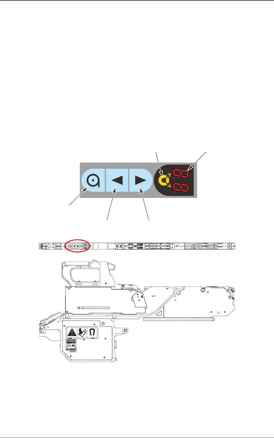 The tape feeder operation buttons and indicators are arranged integrally on the