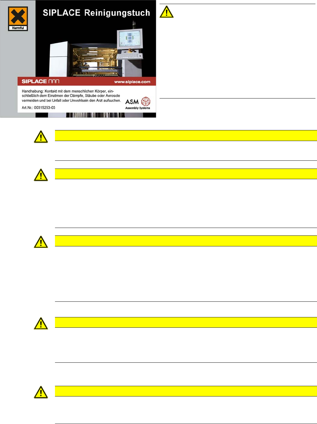 Einleitung Sicherheitshinweise 1.1.7 Sicherheitshinweise zu Gefahrenstoffen 10 Vacuum Pump Vakuumpumpe SIPLACE Reinigungs tuch Verbrauchsm ittel Reinigun g und Schmier ung Schneidgef ahr an IC- und FC-K amera Pro BE-B er…