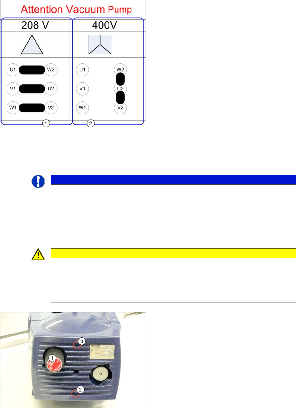 Vakuumpumpe gemäß der Information umgeklemmt werden!