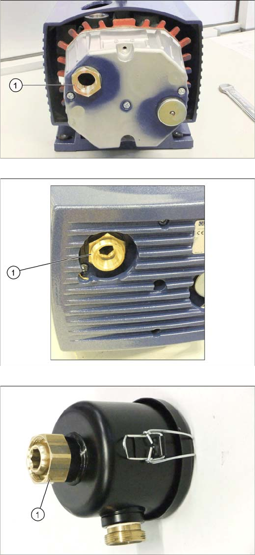 Einbau der Vakuumpumpe Vorbereitende Arbeiten 3.3.2 Vakuumpumpe vormontieren 34 Vacuum Pump Vakuumpumpe 1. Reduziernippel G1 - G3/4 [03088251-xx] ► Trag en Sie Lo ctite 55 a uf die Ge windeverbindung auf und drehen Sie d…