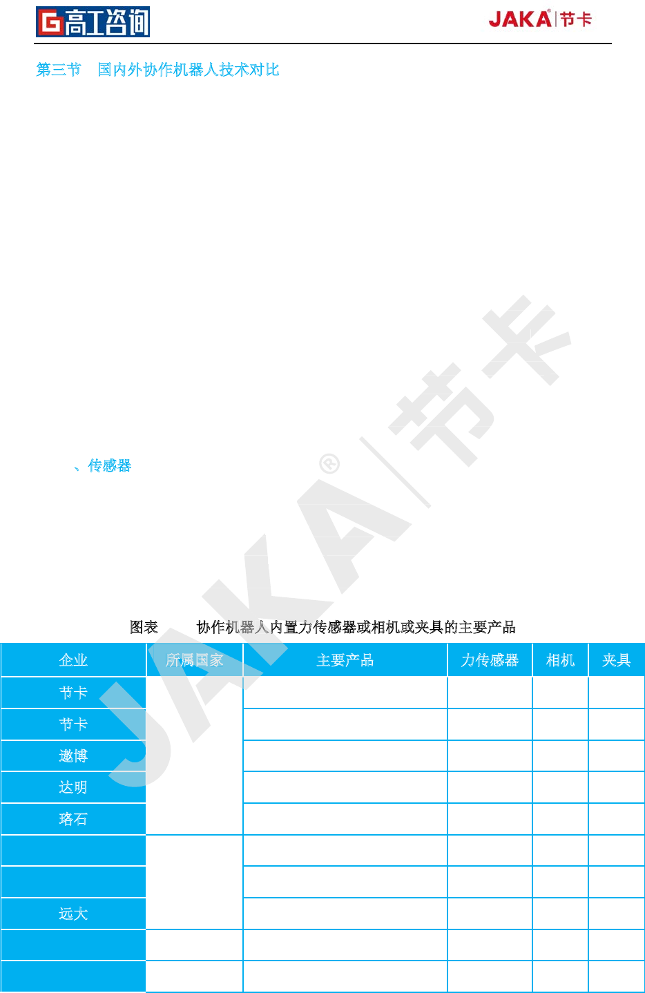 表 16 协作机器人内置力传感器或相机或夹具的主要产品