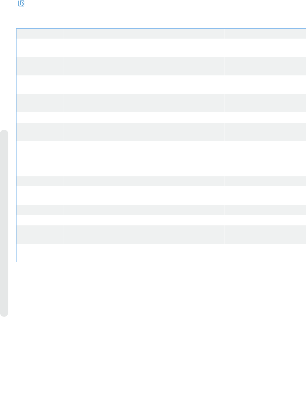 6. 故障排除 优傲 机器人 维修手册 107 维修手册 版权 © 2009 – 2020 优傲机器人公 司版权所有。保留所有权利。 C192A3 机器人紧急停止不一致 系统紧急停止电路问题 检查安全装置及这些 装 置 的 电缆 / 连接。 C192A4 安全停止不一致 安全电路问题 检查安全装置及这些装置的 电缆 / 连接。 C192A5 Euromap 安 全 停 止 不 一 致 Euromap 电路问题 检 查 安 全 控 制 板…