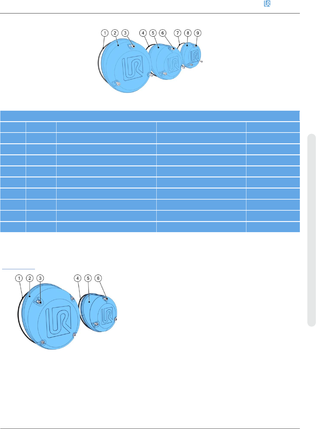 优傲机器人 8. 备件 维修手册 170 维修手册 版权 © 2009 – 2020 优傲机器人公 司版权所有。保留所有权利。 密封圈套件 UR10e/UR 16e – 103700 编号 数量 描述 零件号 页码 1 4 尺寸 2 关节的成型环 不适用 不适用 2 2 尺寸 4 盖子的 O 型环 不适用 不适用 3 1 尺寸 3 盖子的 O 型环 不适用 不适用 4 3 尺寸 2 盖子的 O 型环 不适用 不适用 5 3 尺寸 4 关…