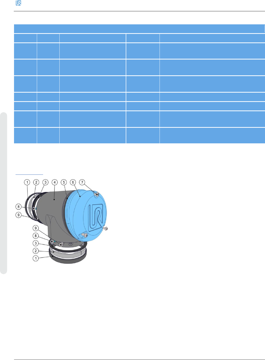 8. 备件 优傲 机器人 维修手册 177 维修手册 版权 © 2009 – 2020 优傲机器人公 司版权所有。保留所有权利。 UR3e 手腕关节 3 - 12 4002 编号 数量 描述 零件号 页码 1 2 尺寸 0 的密封圈 103703 8.1.1.UR3e 的密封 套件 – 103703 ,第 167 页 2 2 尺寸 0 的成型环 103703 8.1.1.UR3e 的密封 套件 – 103703 ,第 167 页 3 2…