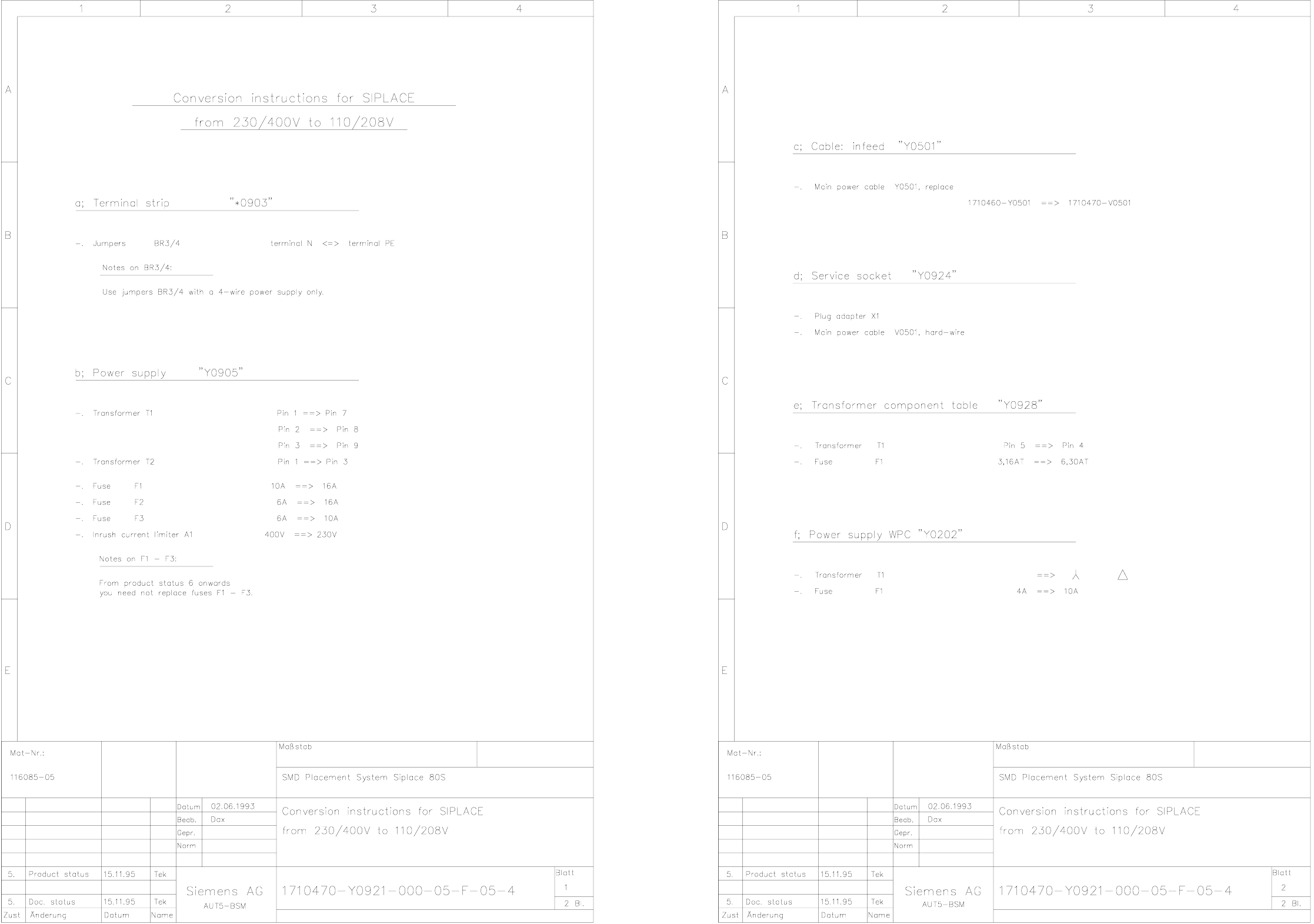 1710470-Y0921-000-05-F-05-4Conversion instructions for SIPLACE from 230/400 V to 110/208V (Sh. 1 of 2)