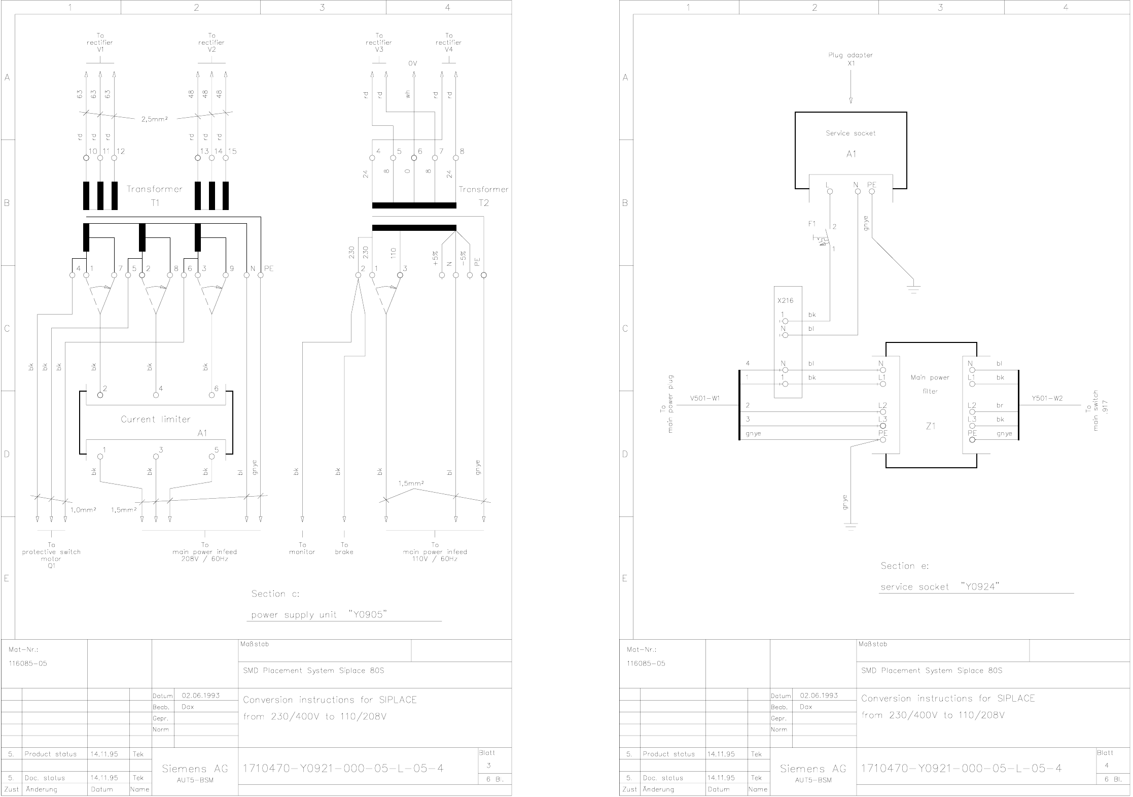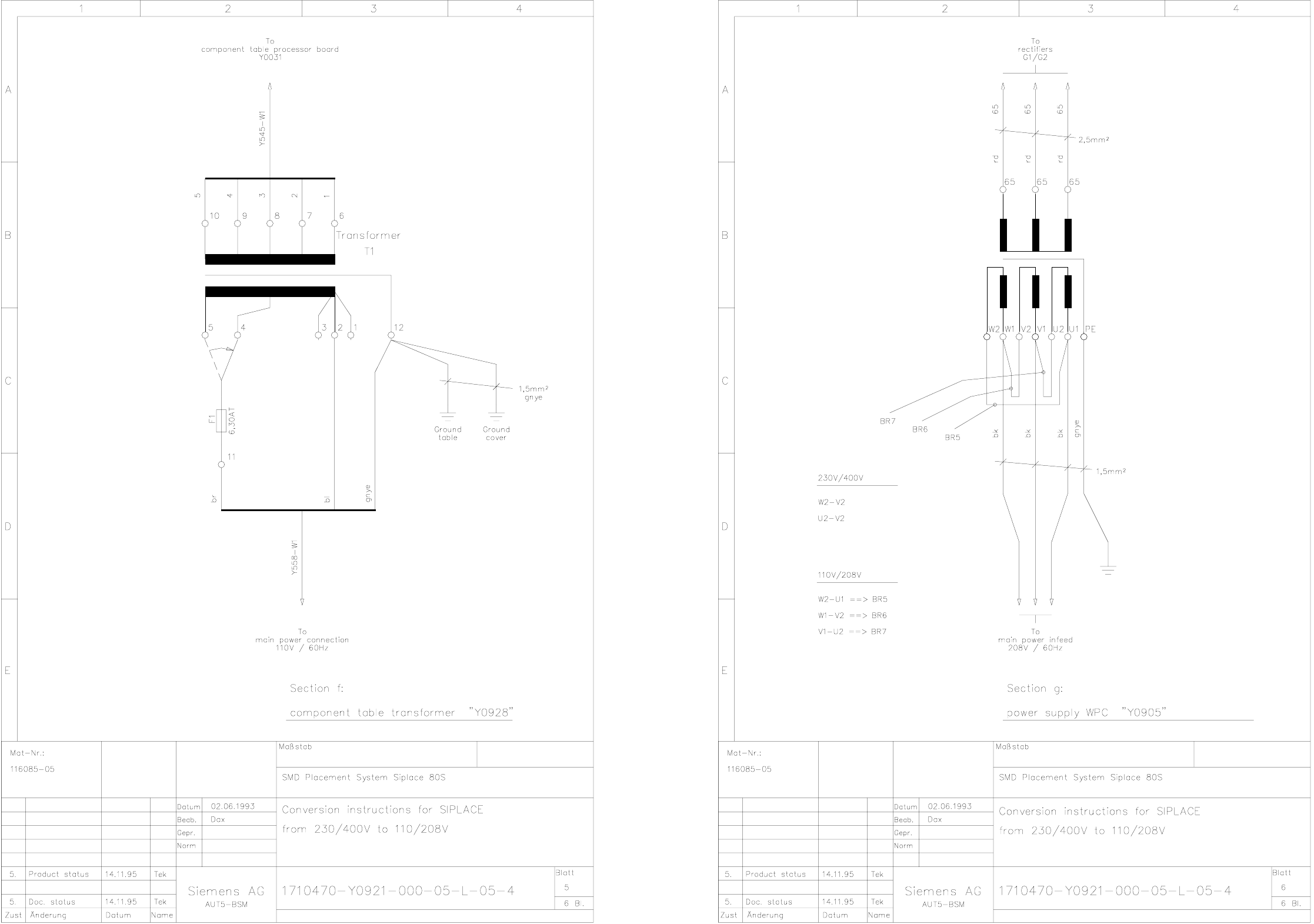 1710470-Y0921-000-05-L-05-4Conversion instructions for Siplace from 230/400V to 110/208V (Sh. 6 of 6)