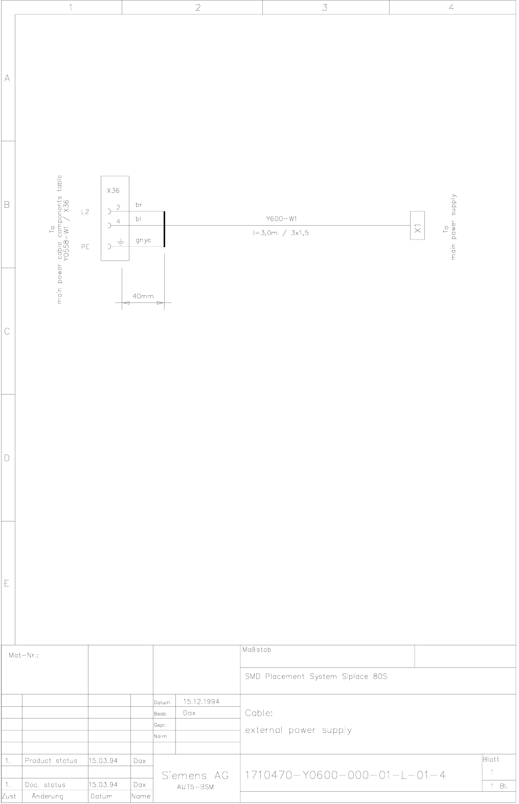 3 - 13 1710470- Y0600- 000-0 1-L-01-4 Cable, ex ternal p ower su pply