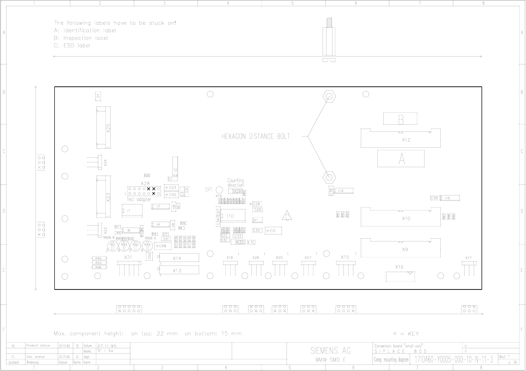 1710460-Y0005-000-10-N-11-3 Conversion board, small axis - comp. mounting diagram, top (Sh. 1 of 2)
