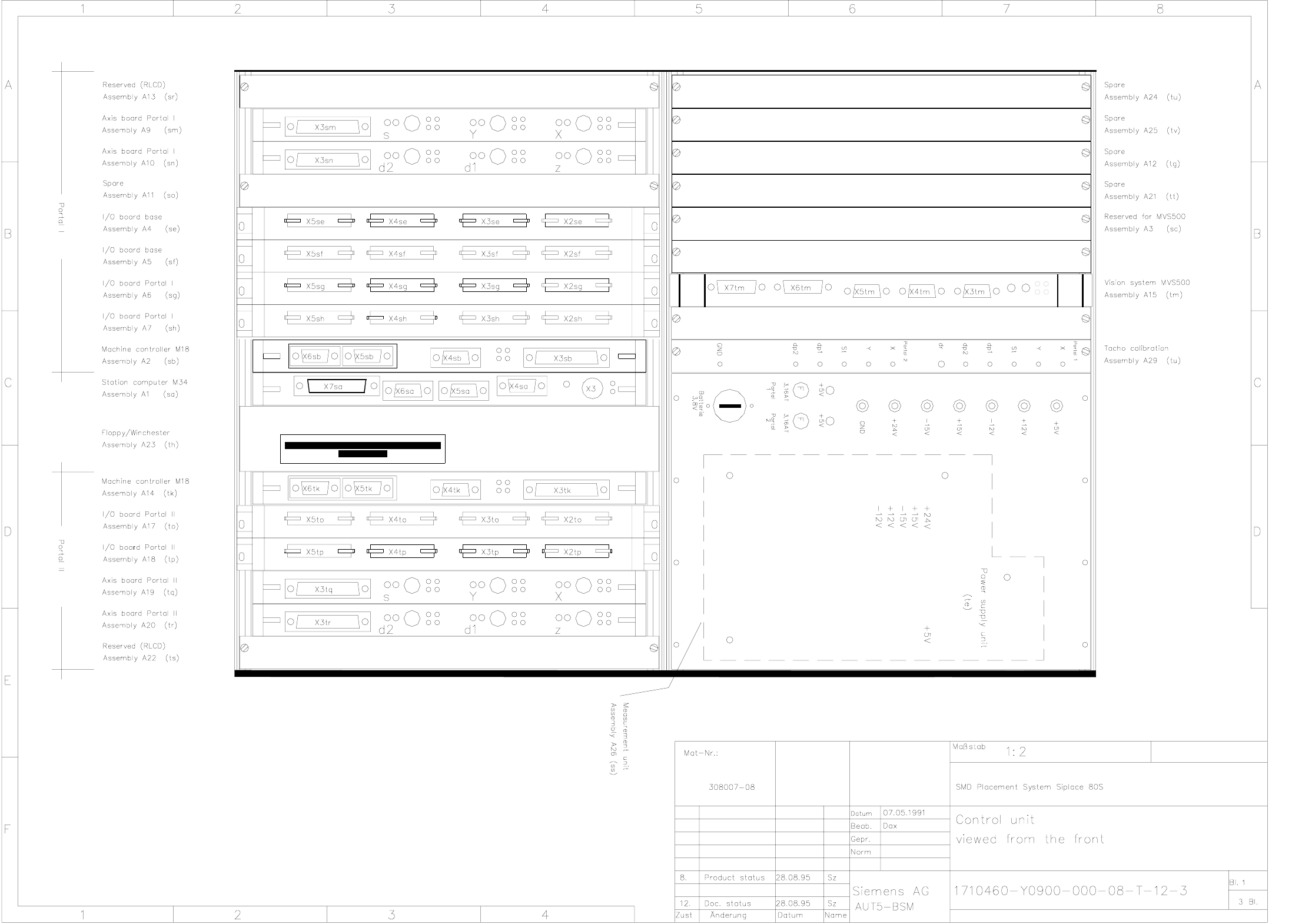 1710460-Y0900-000-08-T-12-3 Control unit viewed from the front (Sh. 1 of 3)