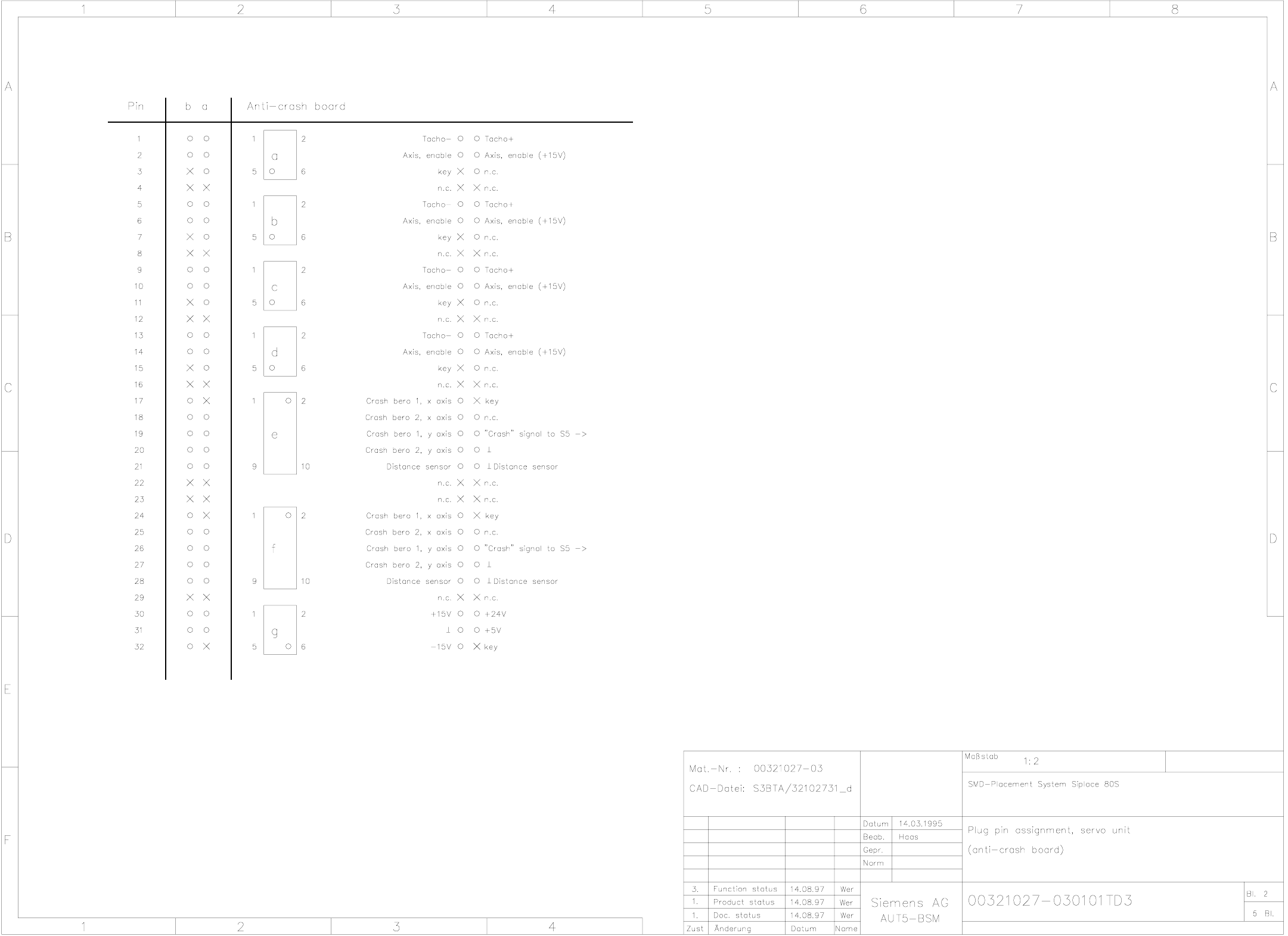 00321027-030101TD3 Plug pin assignment, servo unit (anti-crash board) (Sh. 2 of 5)