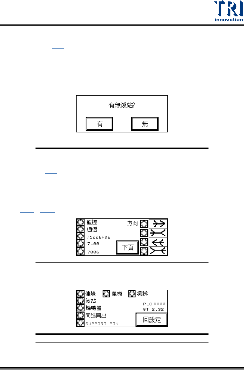 Test Research, Inc. 14 TR7007M SII User Guide – Hardware • 條碼檢測設定:此功能為條碼讀取失敗時不進板,若不使用此功能時請務必 將 PC 的軟體設定為條碼不檢測,或按 圖 28 中 [B arcode fail - out ] 使其反黑, 否則不會進板。 • 二維條碼:若有裝設二維條碼,需將 [ 2D ] 設為反黑。 • 雙螺桿輸送帶:若輸送帶為雙螺桿,需將 [ 2S ] 設為反…