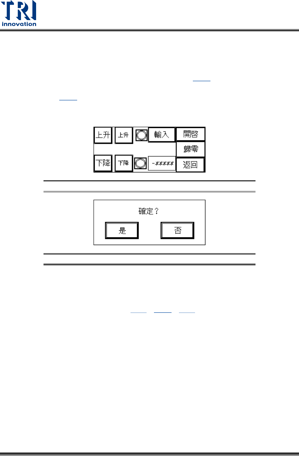 下降的極限 Sensor 指示燈,若該燈亮即表示已到達極限。小字體的[上升]/[下降]按