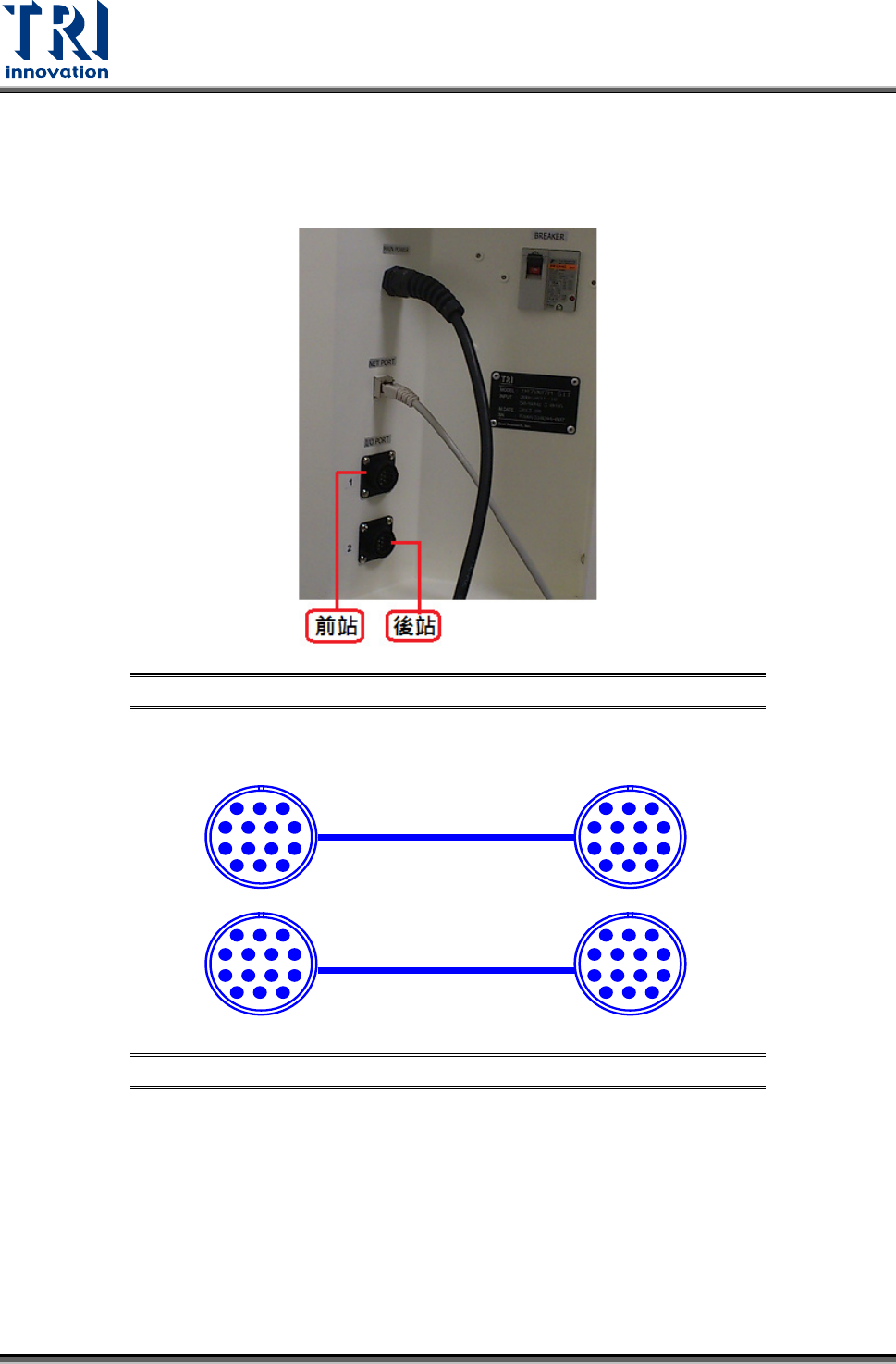 於設備後方電源插座之下方,有一 I/O PORT1,接上連接線,線頭部分共有三組不同