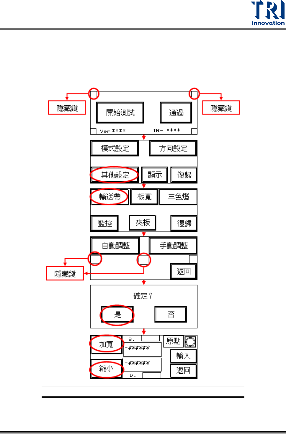 自動板寬:先用手動測試(同時按下二個隱藏鍵要,設定步驟如下圖),觀查其狀態並參