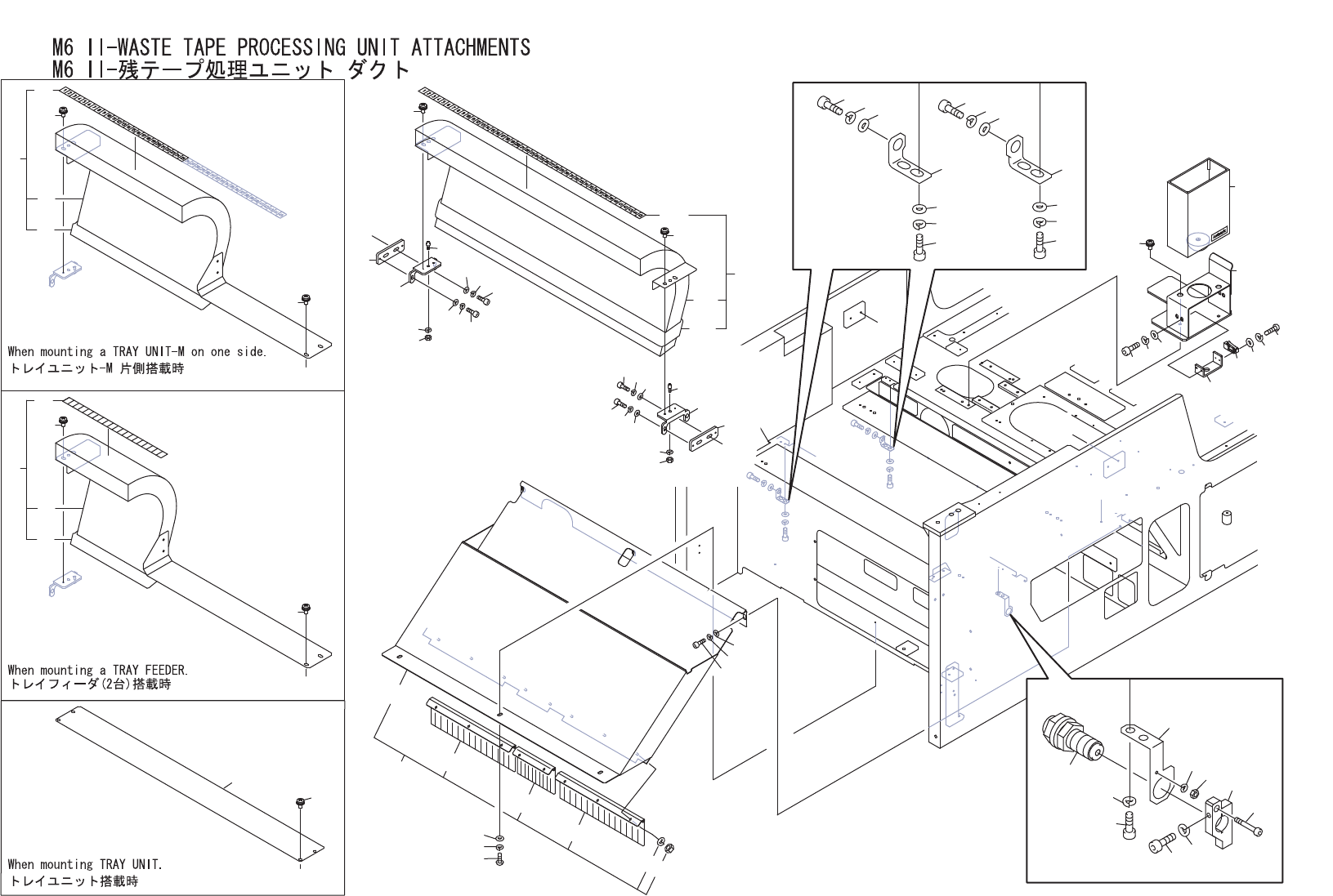 M6 II-WASTE TAPE PROCESSING UNIT ATTACHMENTS M6 II-残テープ処理ユニット ダクト QK03C01 No. Drg.No. & Code No. QTY Description Rating Materials Remarks 番号 図番 & コード番号 個 数 品名 規格 材質 備考 1 PB29642 1 BKT BKT FE 2 H5287A 2 BOLT, HEX…