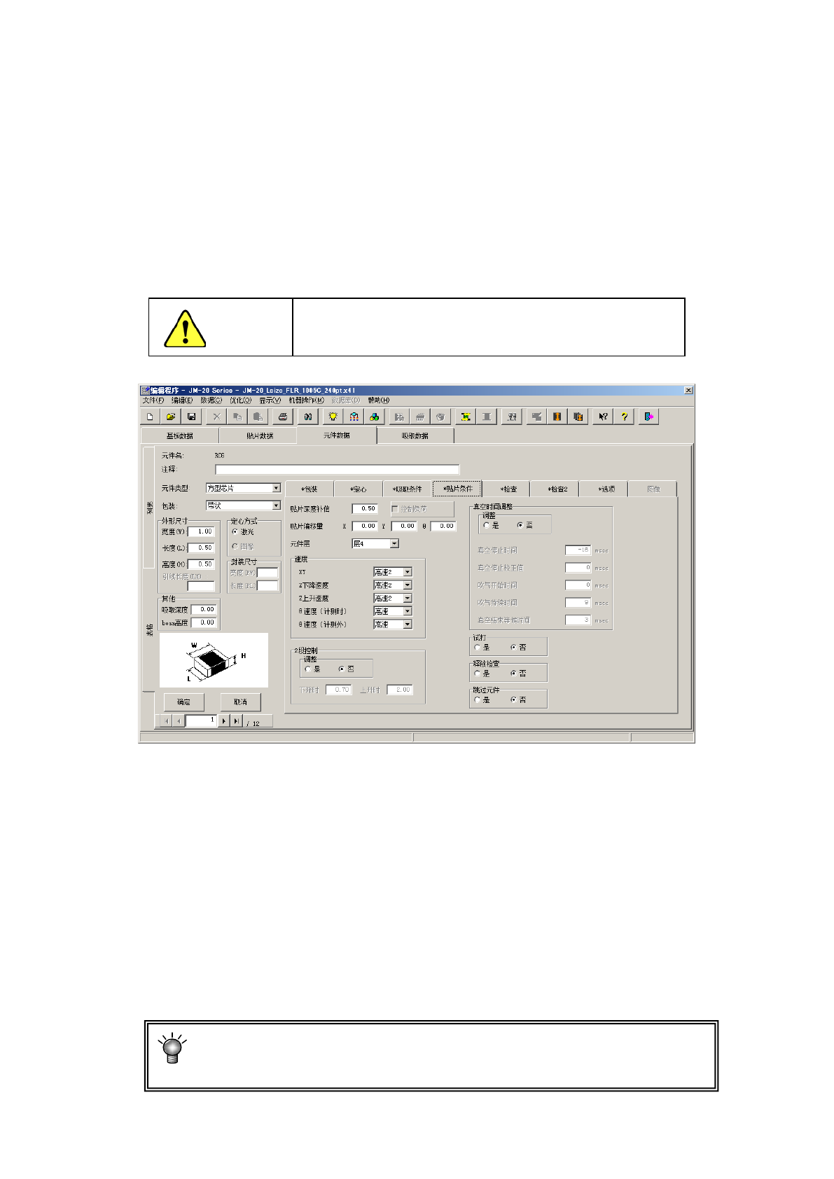 使用轴向供料器时,贴片深度补偿切勿输入正方向的值。