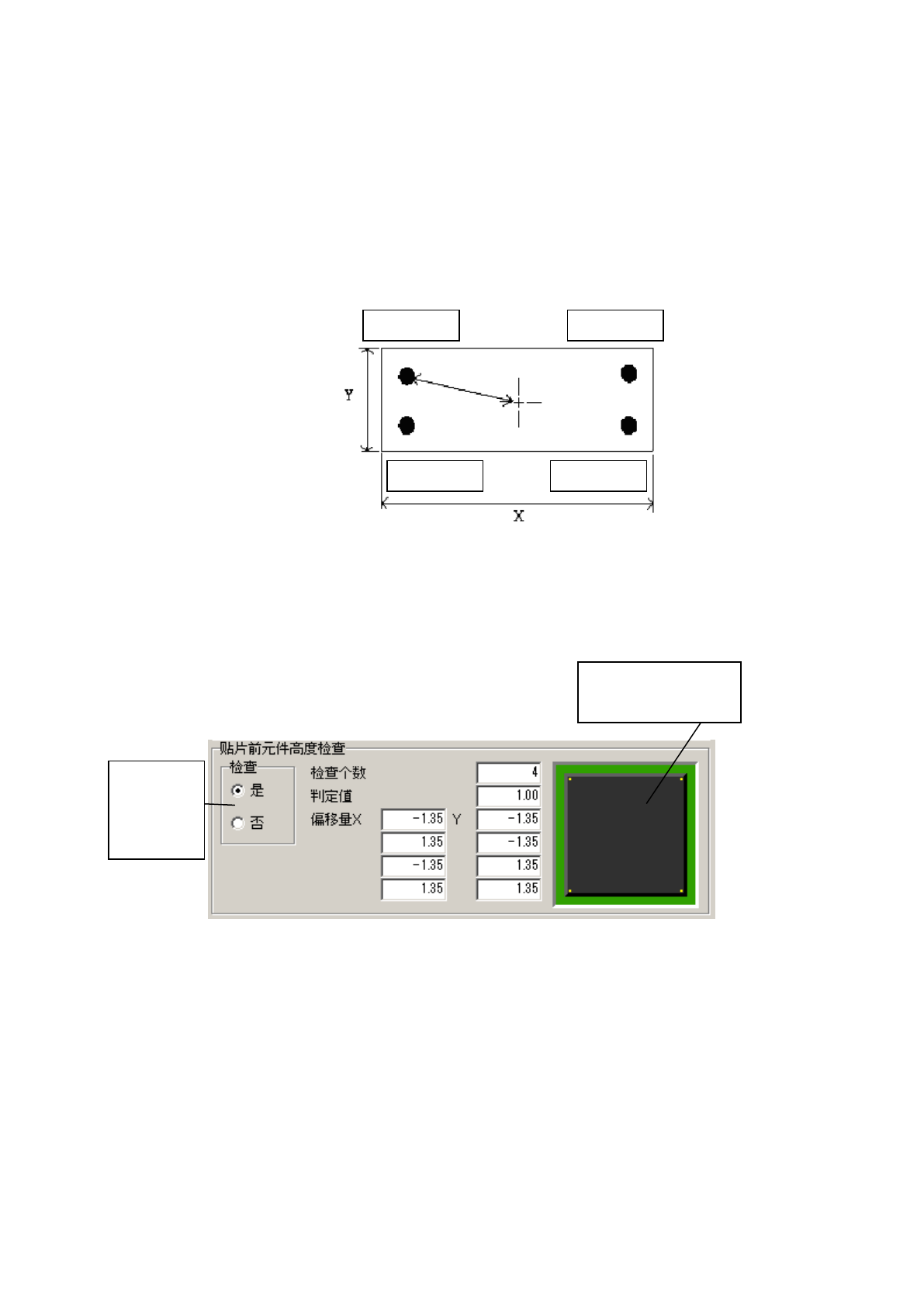 操作手册 Ⅱ 2- 98 (3) 贴片前元件面 高度 检查 在 元件贴片前 通过 HMS 对 贴片点上有无异 物进行检查 的功能 。 插 入元件 的 贴片时 ,如 果 插入 失败, 元件 可能倒在下一个进行 贴片的 贴片点 上。 在倒下元件 的上 面继续进行元件 贴片 ,会造 成 元件 或吸嘴破损 , 为了避免这种 情况而使用的 功能。 除插 入元件以 外 ,还可以用 于在元件 贴片前确认 贴片点 上有无异物。 测量 检查个数 的测定位…