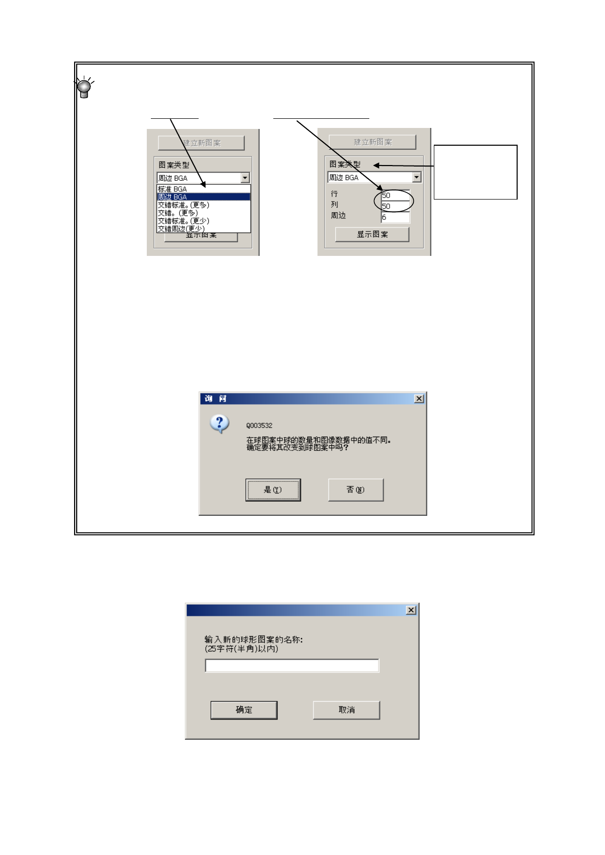设置周边型 BGA、交叉的周边型 BGA(外围多)、交叉的周边 BGA(外围少)球面图案时,要从周边