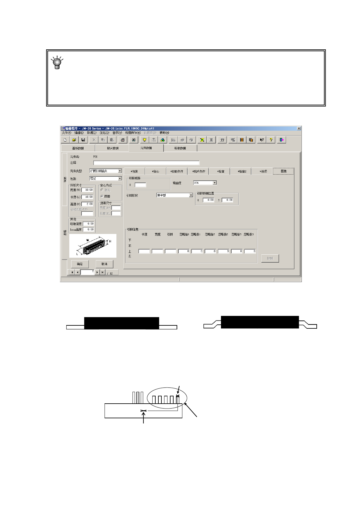 输入从元件识别中心位置(VCS 的中心位置)到进行识别的引脚组的右端引脚的顶端中心位置的 X