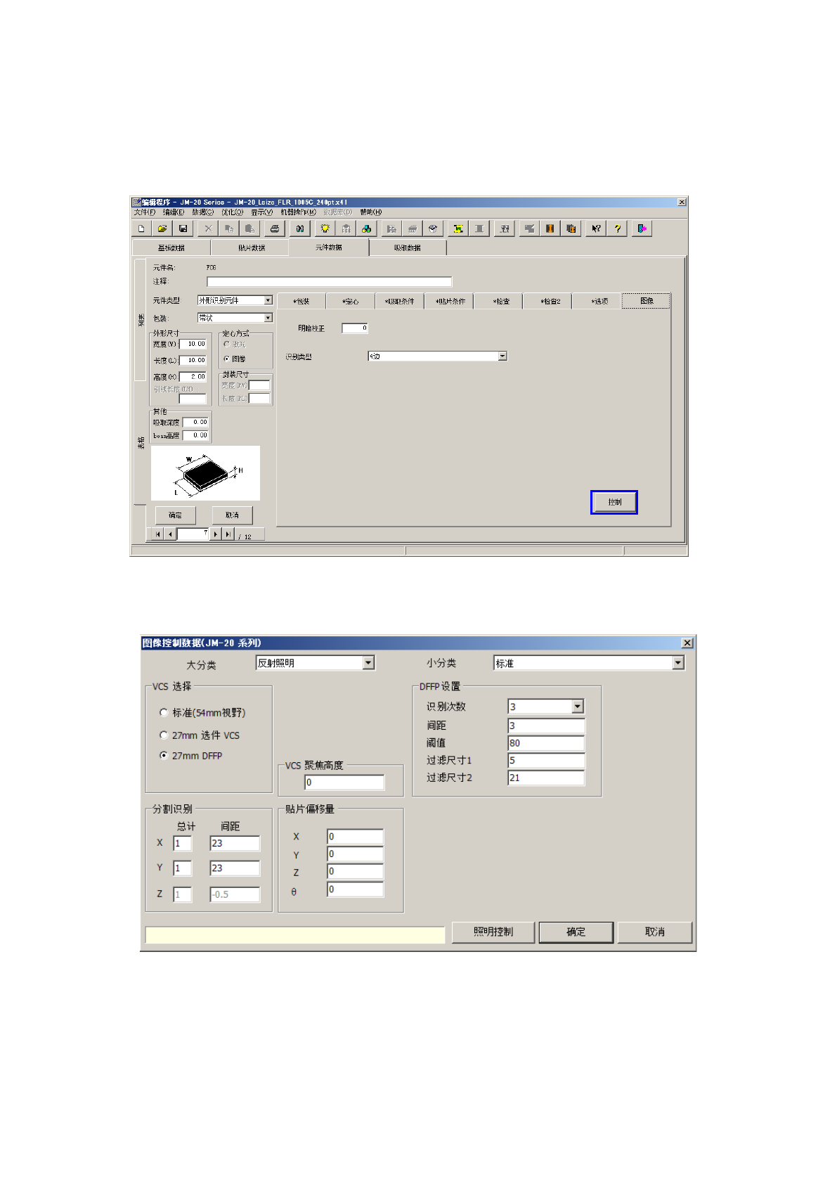 是对图像识别元件进行详细设置的画面。