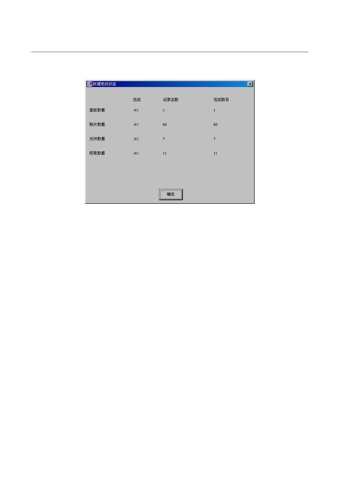 从菜单栏中单击「数据」/「数据完成状态」后,会显示如下画面。