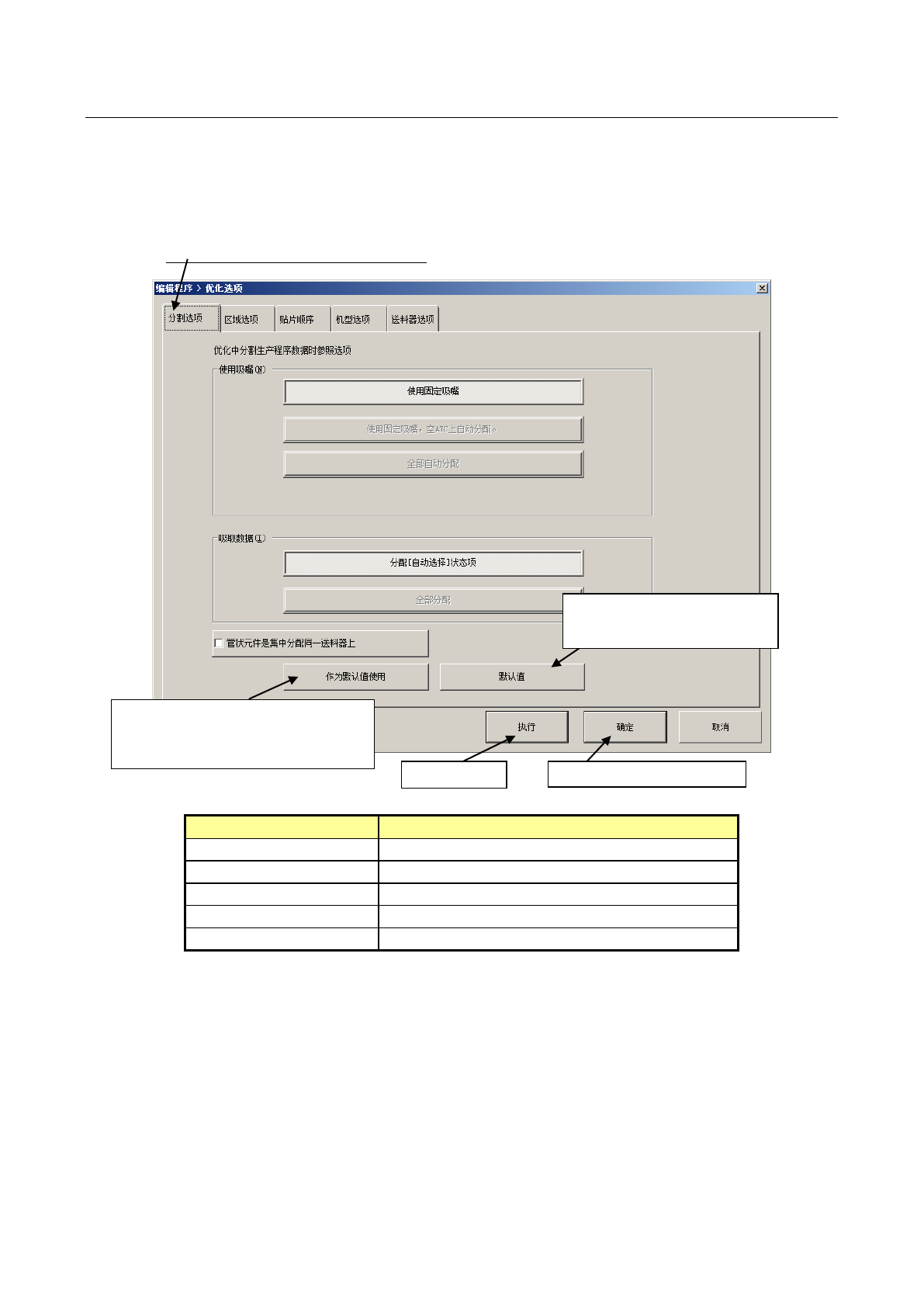 在菜单栏上点击「优化」/「优化」后,可显示“分割选项”画面。