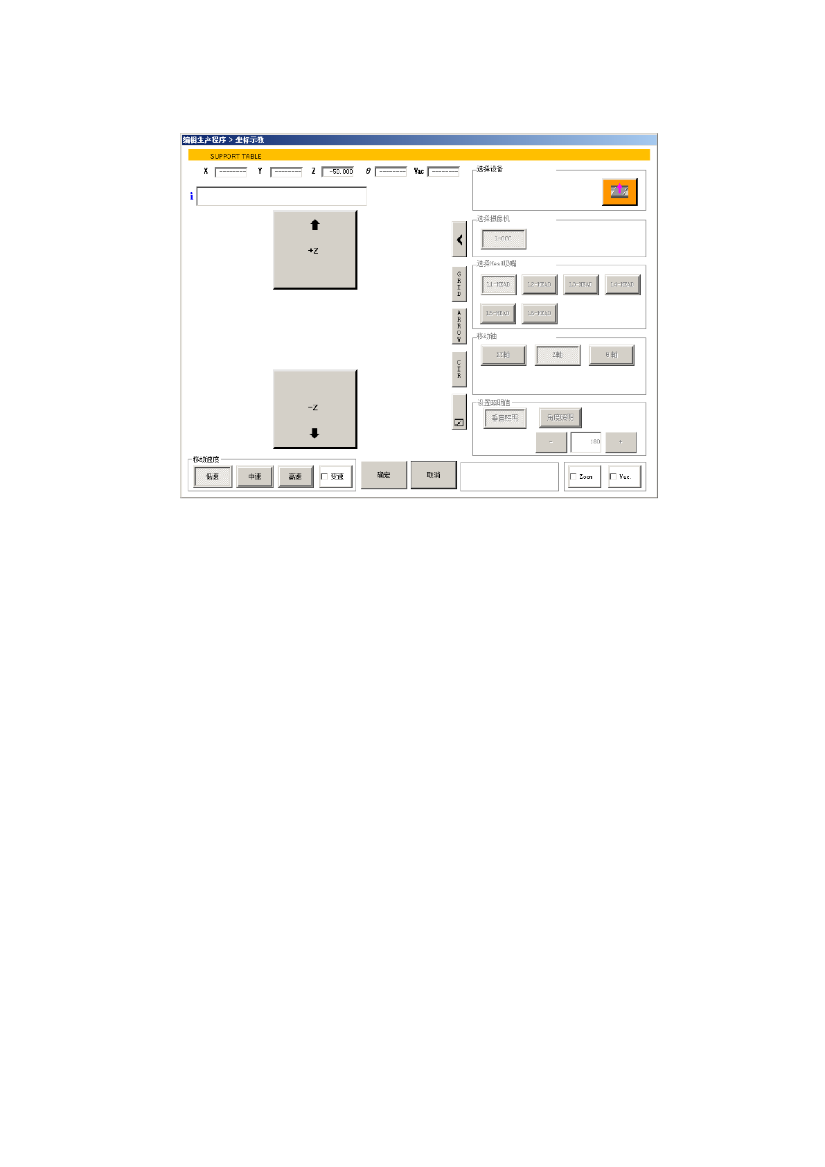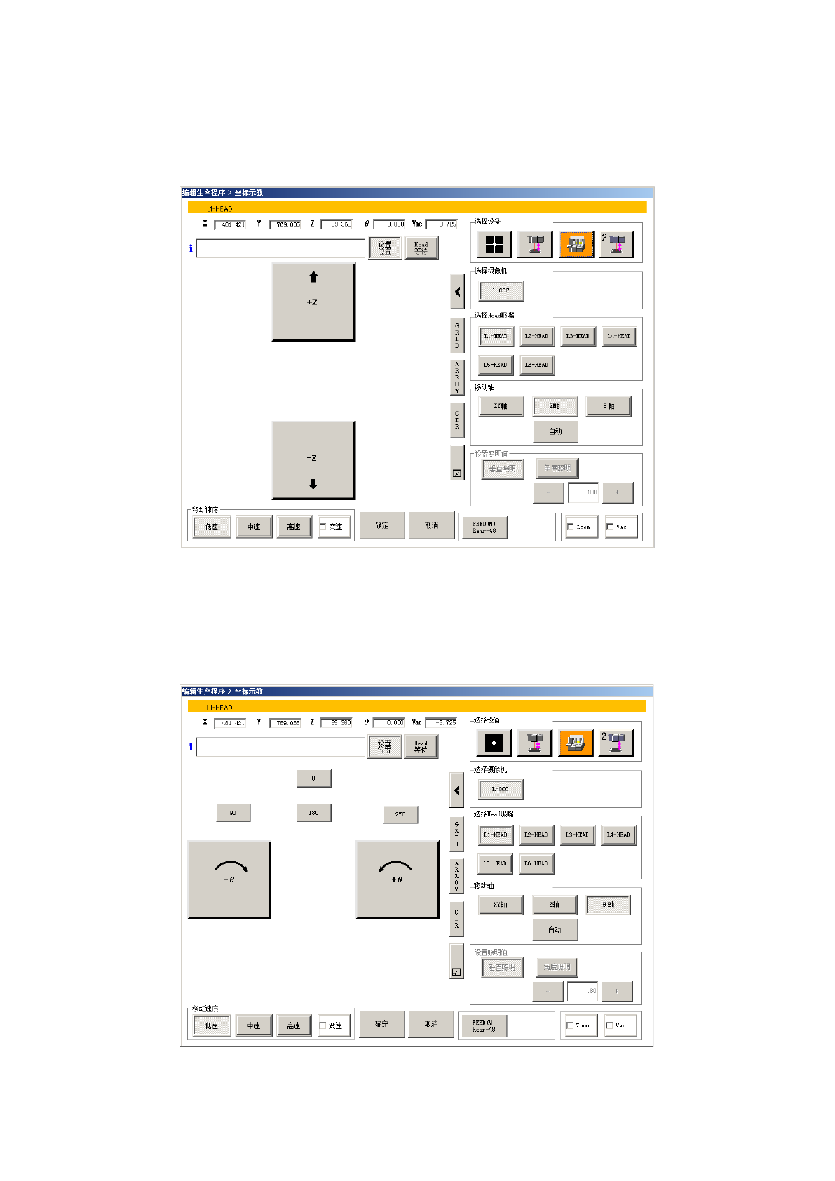 选择移动轴的[Z 轴]按钮,用上下方向按钮上下移动吸嘴 Head。