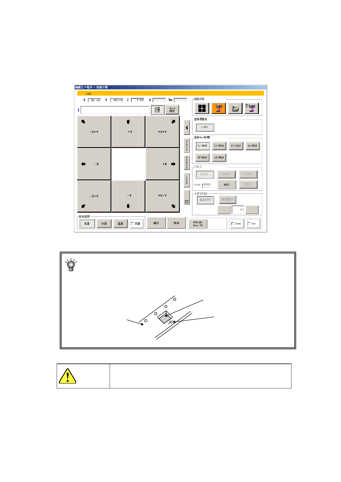 使用 HMS 进行示教时,在用摄像机进行 XY 轴的示教后,HMS 会向测量位置移动,按选择装置