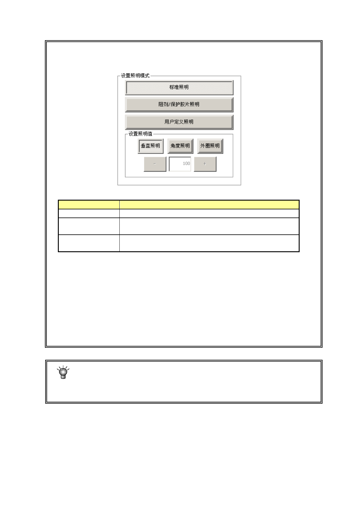 ※用户定义的照明模式,一般设置在 50~200 之间。设置在 50 以下时,有时光亮不稳定。
