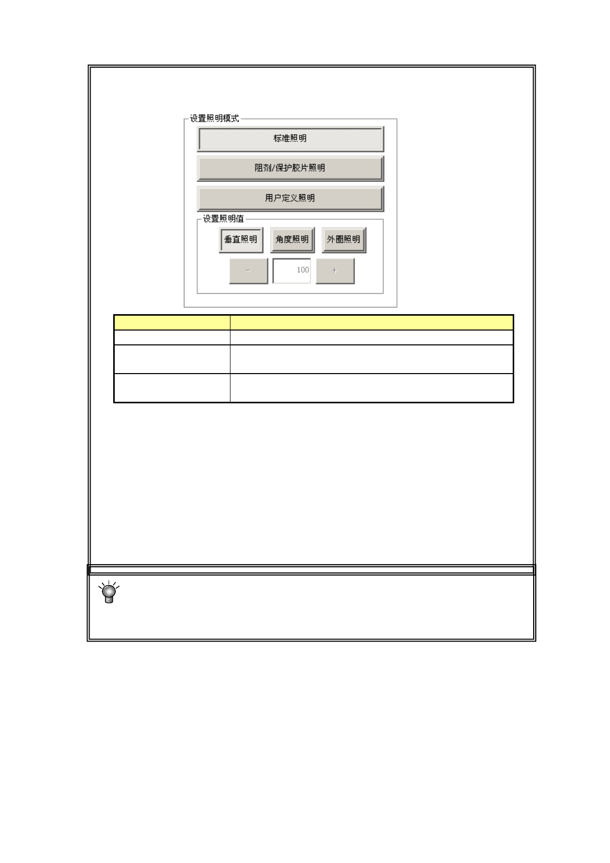 ※选择用户定义照明模式时,一般设置在50~200之间。设置50 以下时,