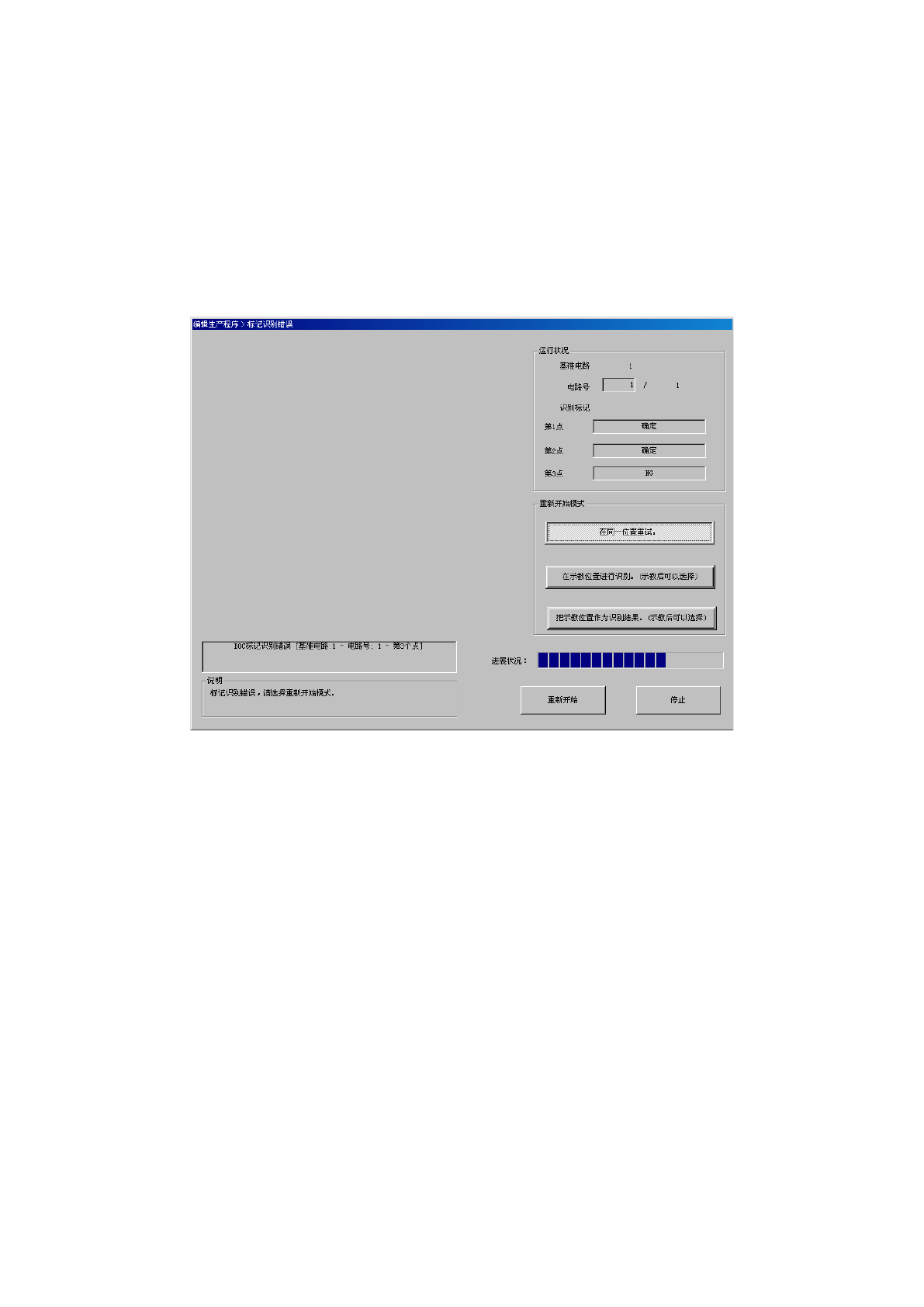 在执行中 BOC 标记识别失败时,会在画面的[说明]栏中显示提示信息,可以选择[重新开始模式]项目。