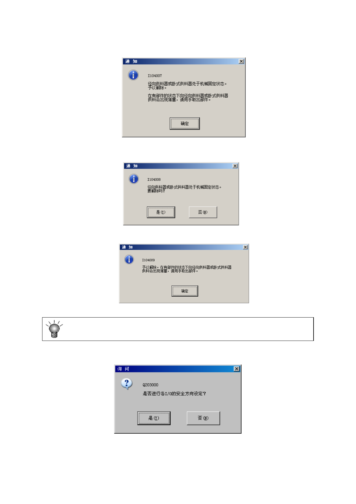 在径向供料器或卧式供料器固定的状态下,会根据机器设置的「结束编辑时,询问径向供料器解除固