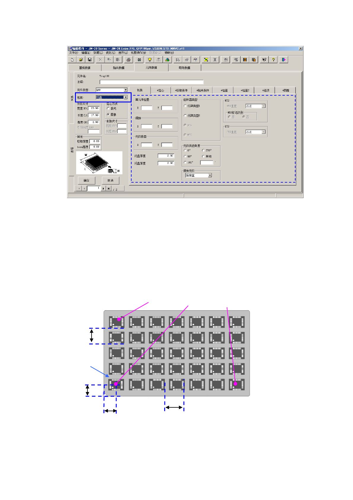 输入从托盘外形到首元件的元件中心位置的尺寸(X、Y)。