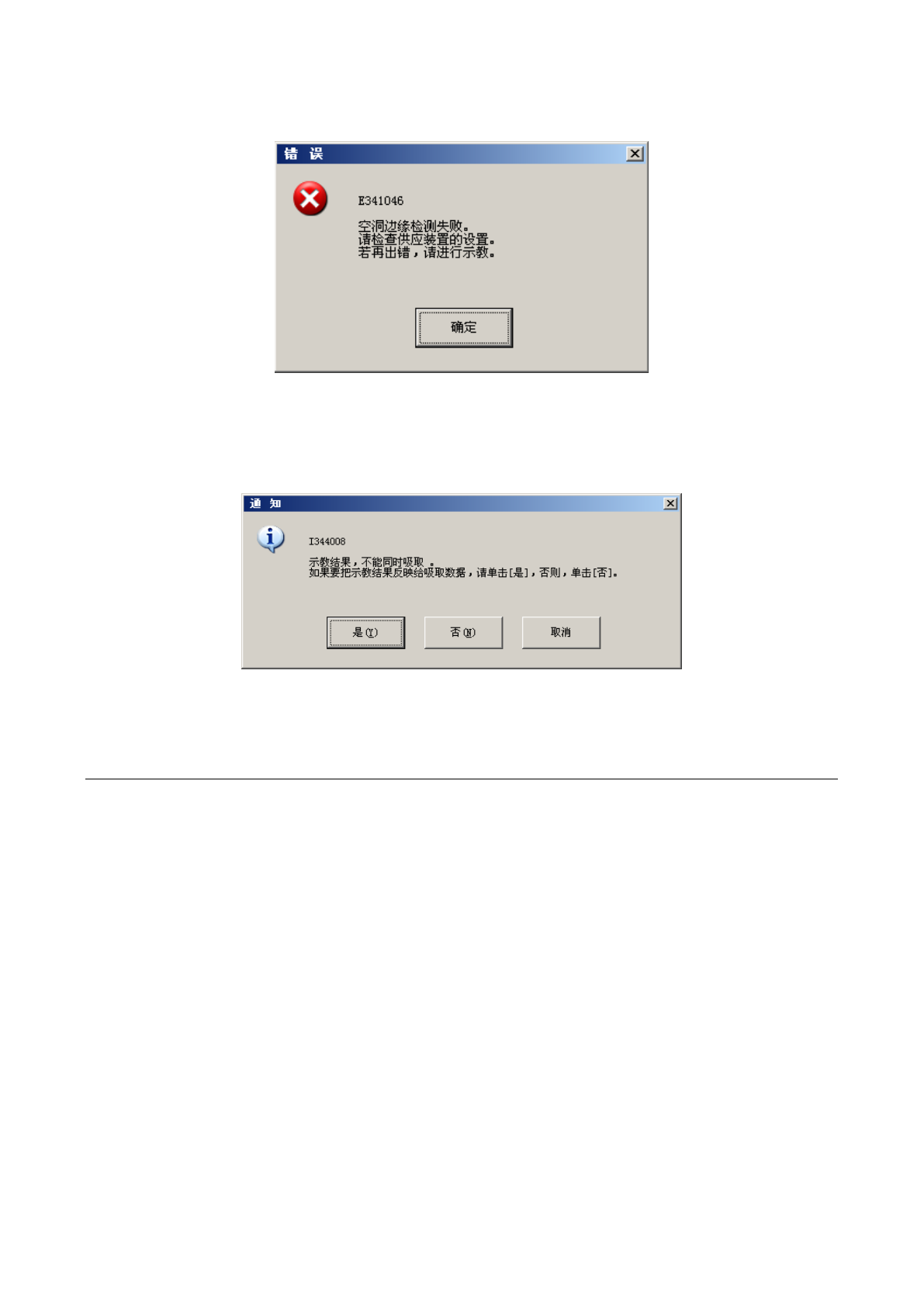 设置的吸取数据与自动示教校正的吸取数据差距过大时,显示如下错误提示。