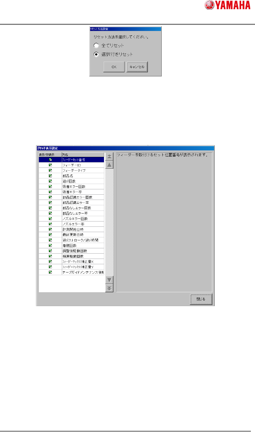 図 3.3㻌 リセット項目設定画面㻌