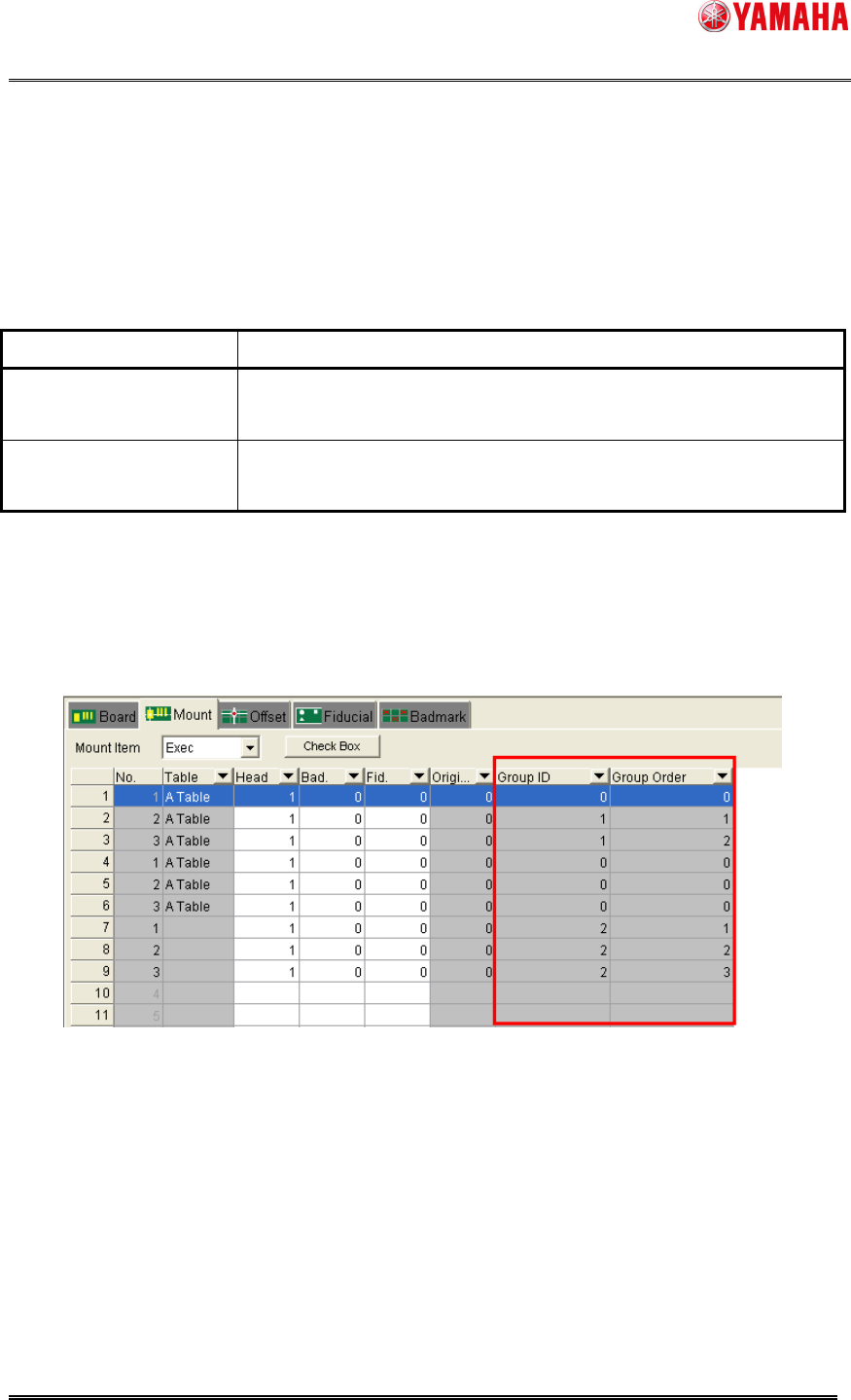 SMT Software En gineering Group IMOperations YAMAHAMOTORCO.,LTD. MD OC-SOFT50106 11/11 6.2 A rranging Mounting Order with “M ount Grou p Number” W hen you use “Mount G roup Num ber” under t he co…