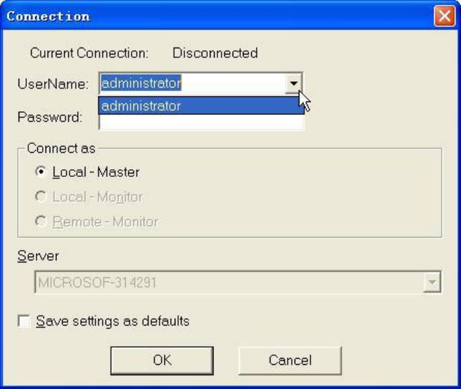 1.1.5. “UserName”内输入或选择相应的用户名,然后在“Password”输入相应密码后点击“OK至图-1.3