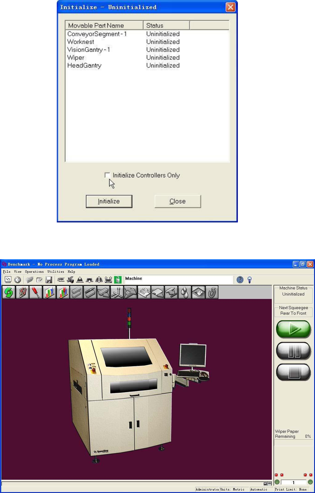 注:“Initialize Controllers Only 如果选中只会软体自检,硬体不会动作