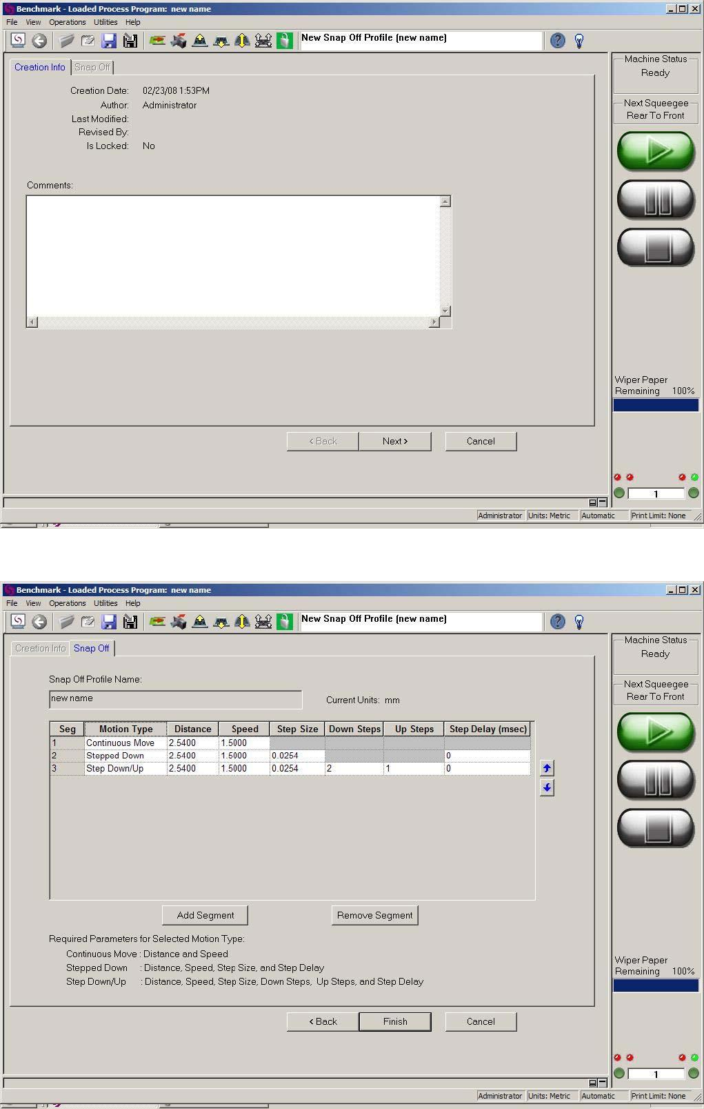 4.6.1.3 Snap Off:Snap Off 页面设定相关说明如下(表-4.3),根据当前需要设定完成点击“Finish”后出现图-