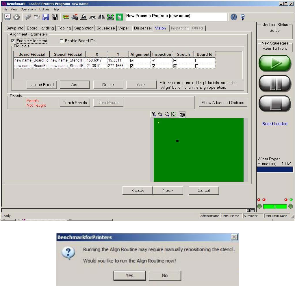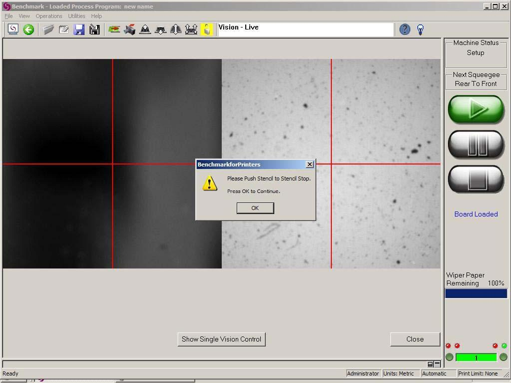 的提示让你重新放一次钢网,记住要让钢网的边靠到钢网定位柱。“OK”回到 Vision 布面。