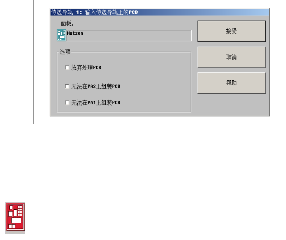 如果 PCB 位于输入传送导轨上,将出现以下对话框。 3