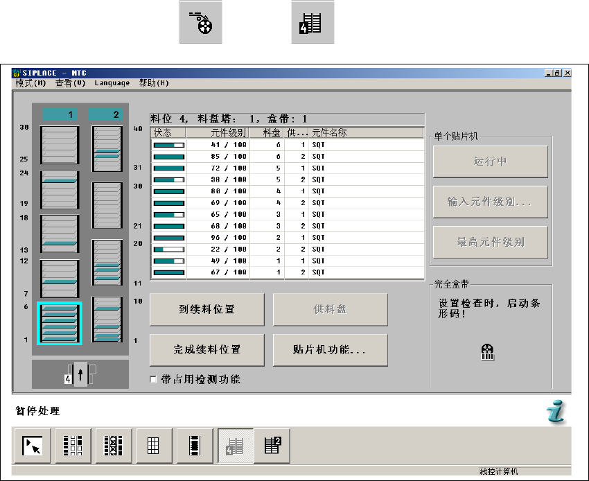 MTC 记录运行小时和用于元件供应的供料层更改的数量。通过 SITEST 可调用该数据。 8